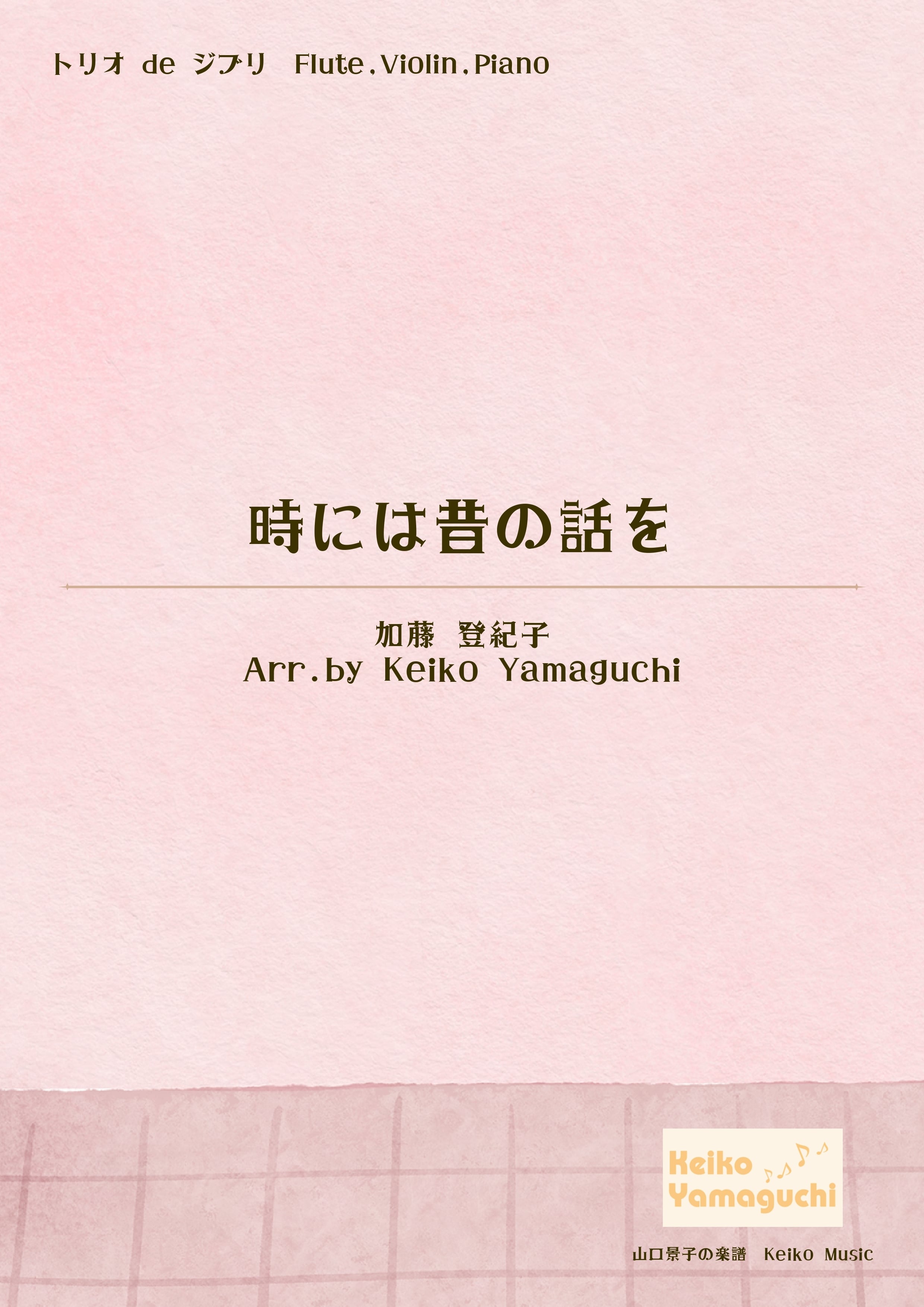 加藤登紀子さん作詞作曲の「時には昔の話を」です。宮崎駿監督のアニメ映画『紅の豚』のエンディング・テーマとしても有名ですね。フルート、ヴァイオリン、ピアノのトリオ用にアレンジしました。どうぞ、心に響く温かい名曲をお楽しみください♪