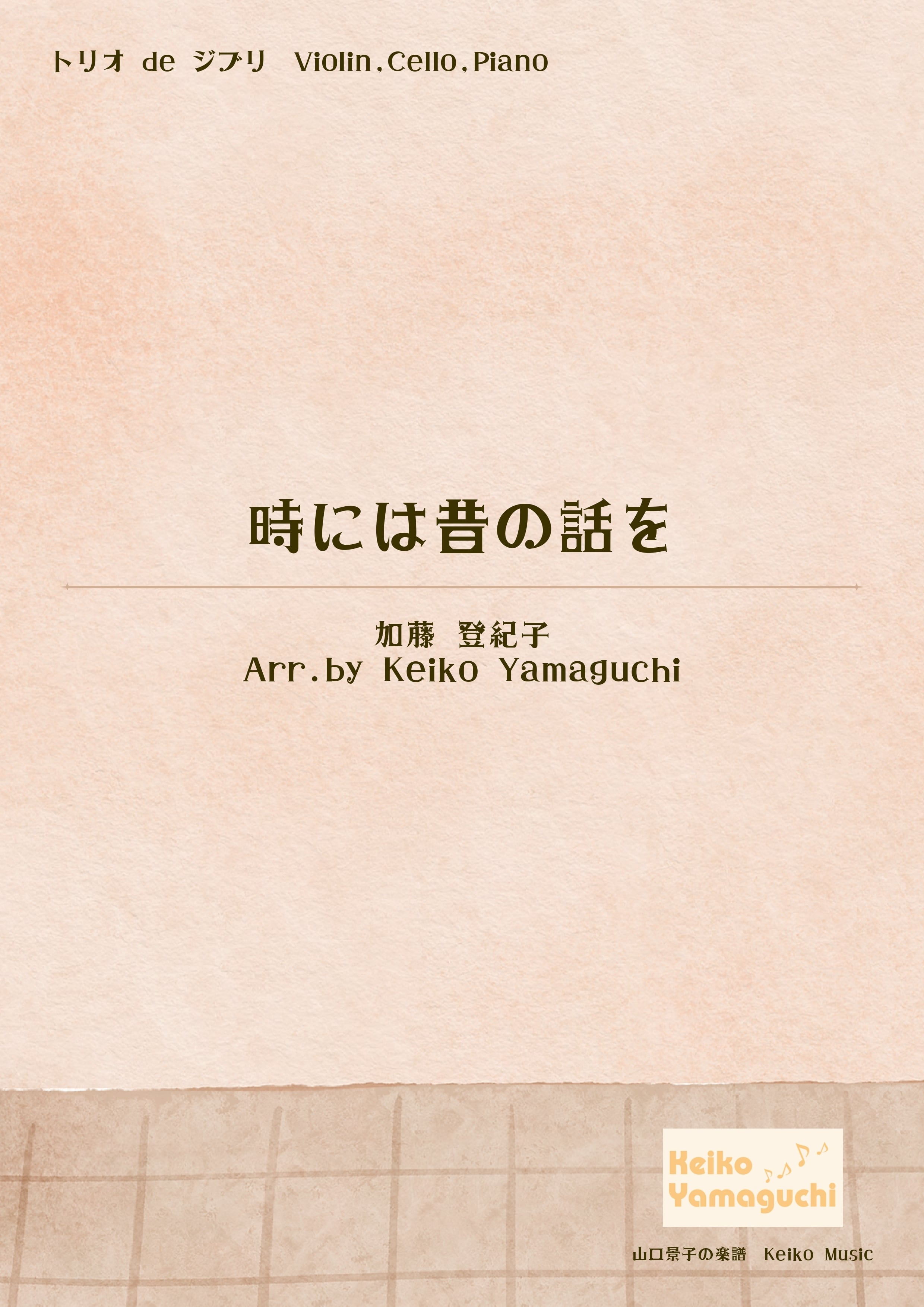 加藤登紀子さん作詞作曲の「時には昔の話を」です。宮崎駿監督のアニメ映画『紅の豚』のエンディング・テーマとしても有名ですね。ヴァイオリン、チェロ、ピアノのトリオ用にアレンジしました。どうぞ、心に響く温かい名曲をお楽しみください♪